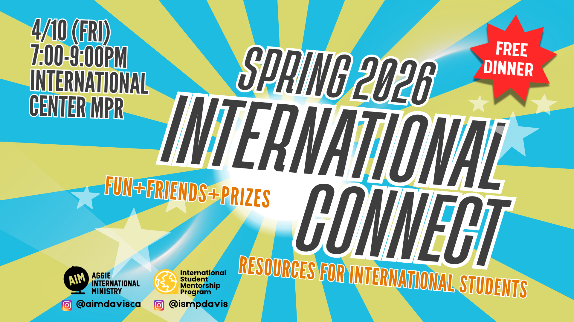 International Student Mentorship Program (ISMP) is a non-profit Christian organization with a network of volunteer mentors across the U.S. and in Asia. Their goal is to provide international students with a mentor who can guide them through their college experience in America. The ISMP Davis mentors are UC Davis alumni and would be happy to discuss any topic with you, such as resume help, understanding American culture, and much more!